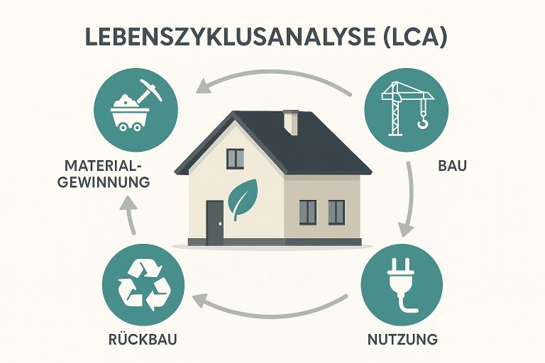 Mit einer Lebenszyklusanalyse (LCA) betrachten wir Ihr Gebäude ganzheitlich, von der Materialherstellung bis zum Rückbau.
